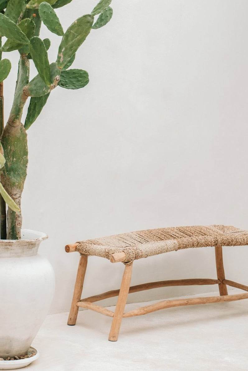 Diese stilvolle Bank verleiht jedem Innenraum, jeder Sommerterrasse oder jedem Garten einen wunderschönen Boho-Touch. Großartig fürs Urlaubsfeeling Zuhause!