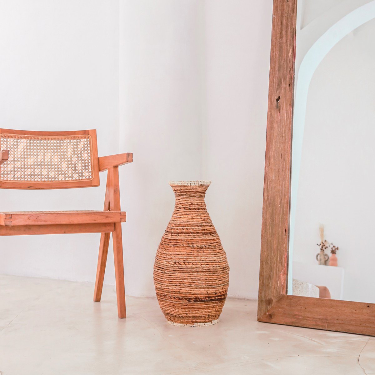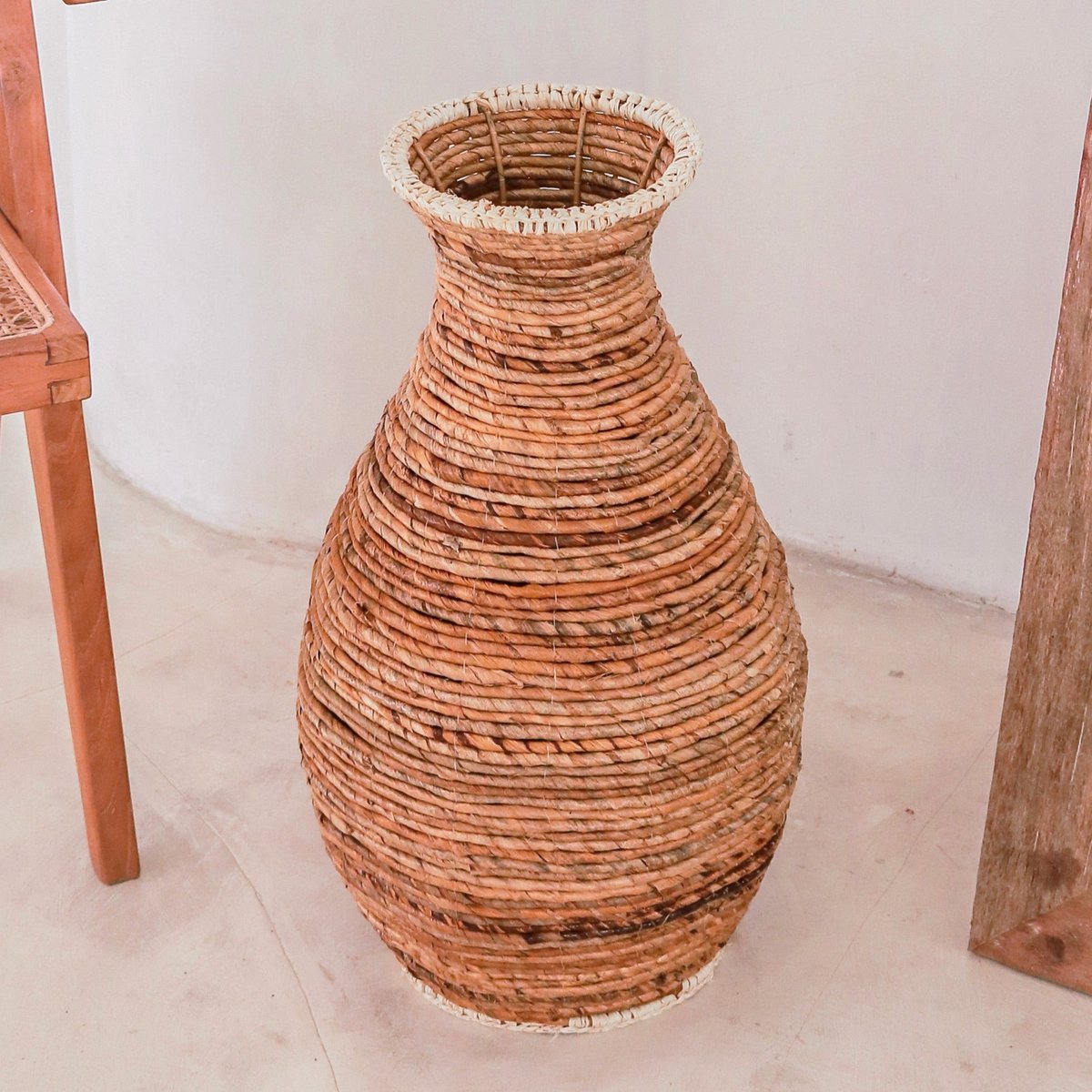 Geflochtene Boho Vase TUMBAK aus Bananenfaser und Bast
