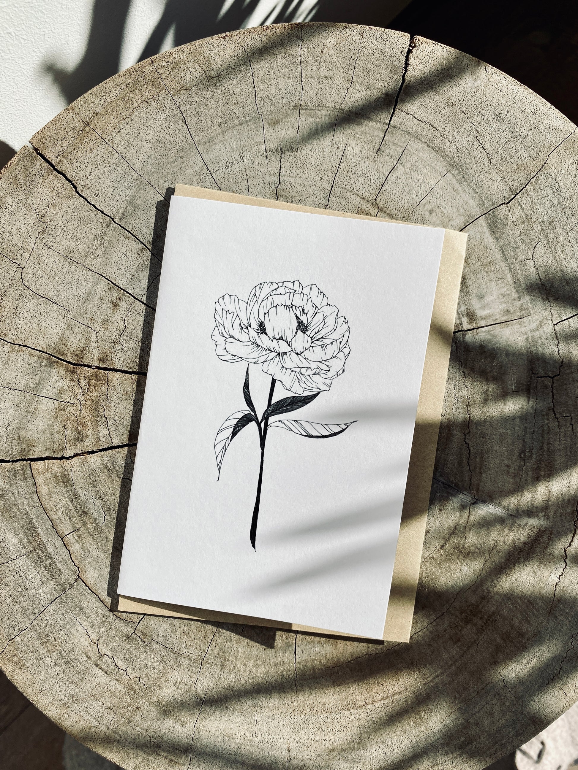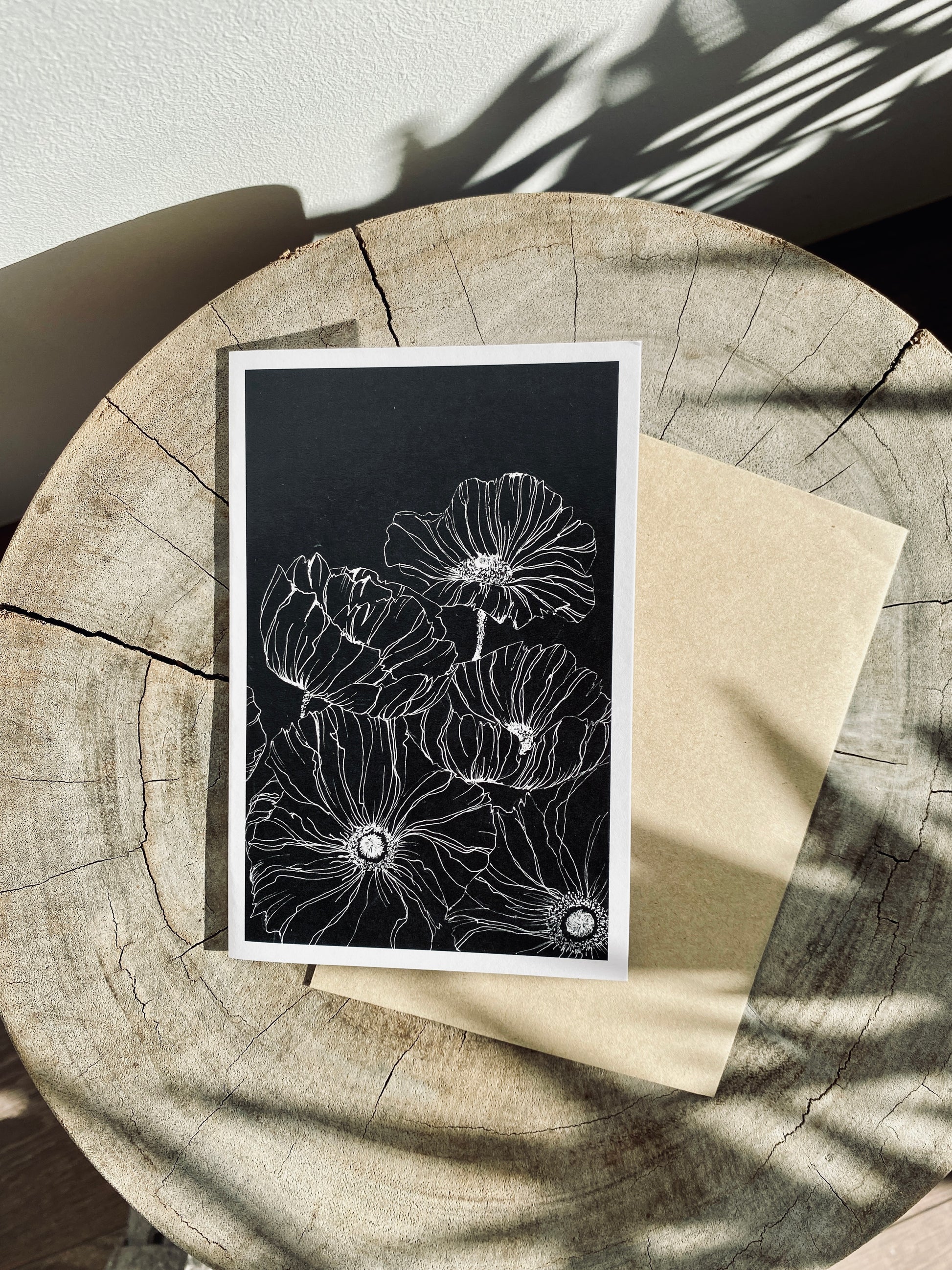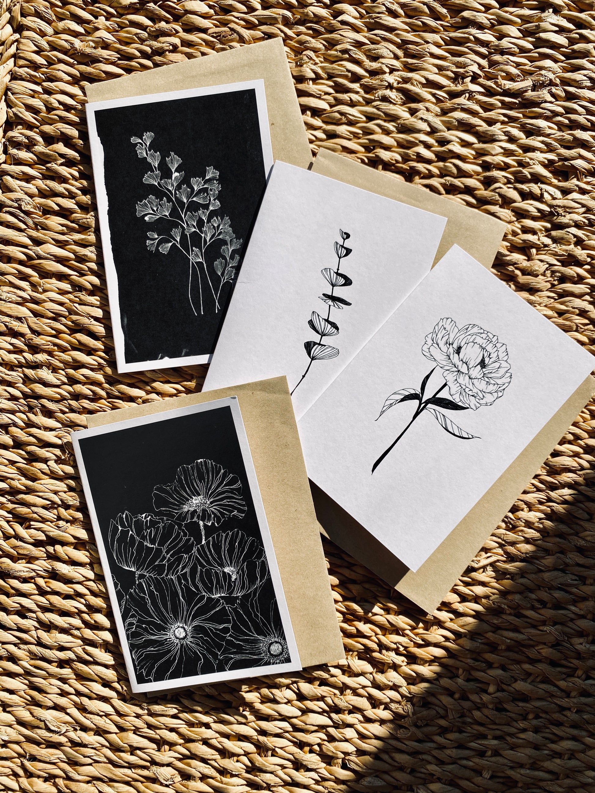 Doppelkarte 10x15cm, begleitet von einem Recycling-Kraft-Umschlag.