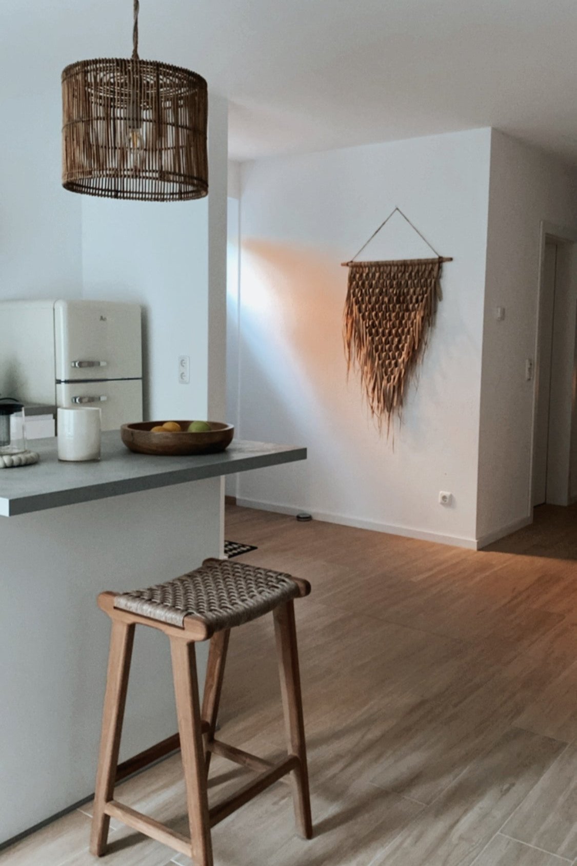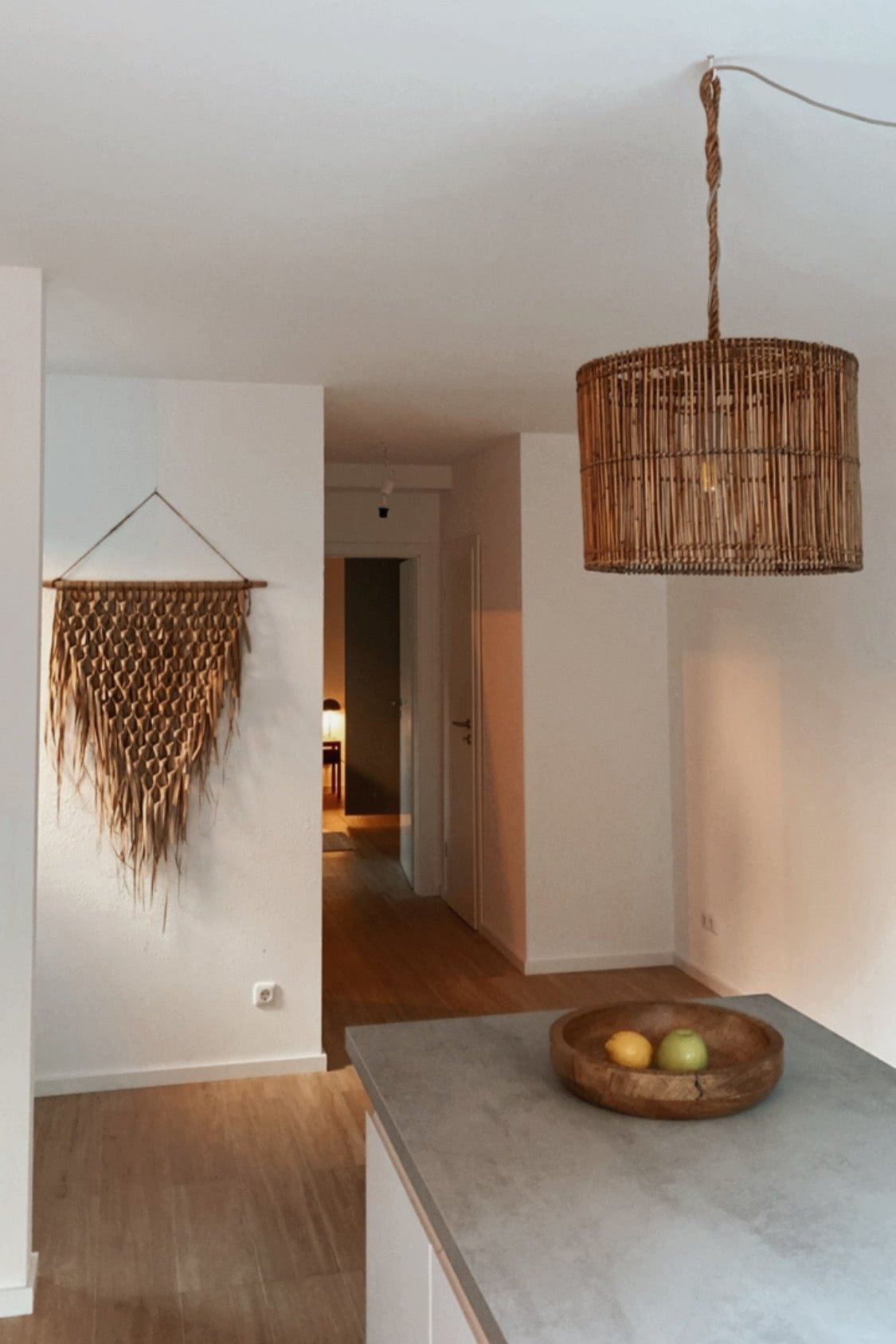 Die Wanddekorationen werden gerollt geliefert. Daher benötigen sie nach dem Aufhängen ggf. etwas Zeit, um sich zu entfalten. Außerdem wird jeder Wandbehang handgeflochten und so können Unterschiede in Form und Farbe auftreten.