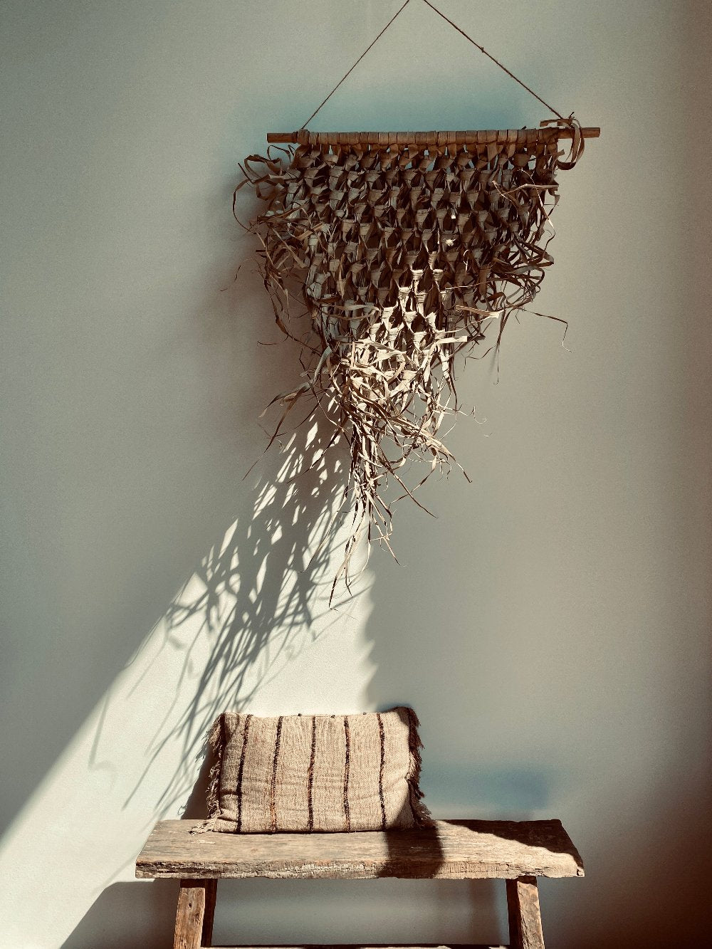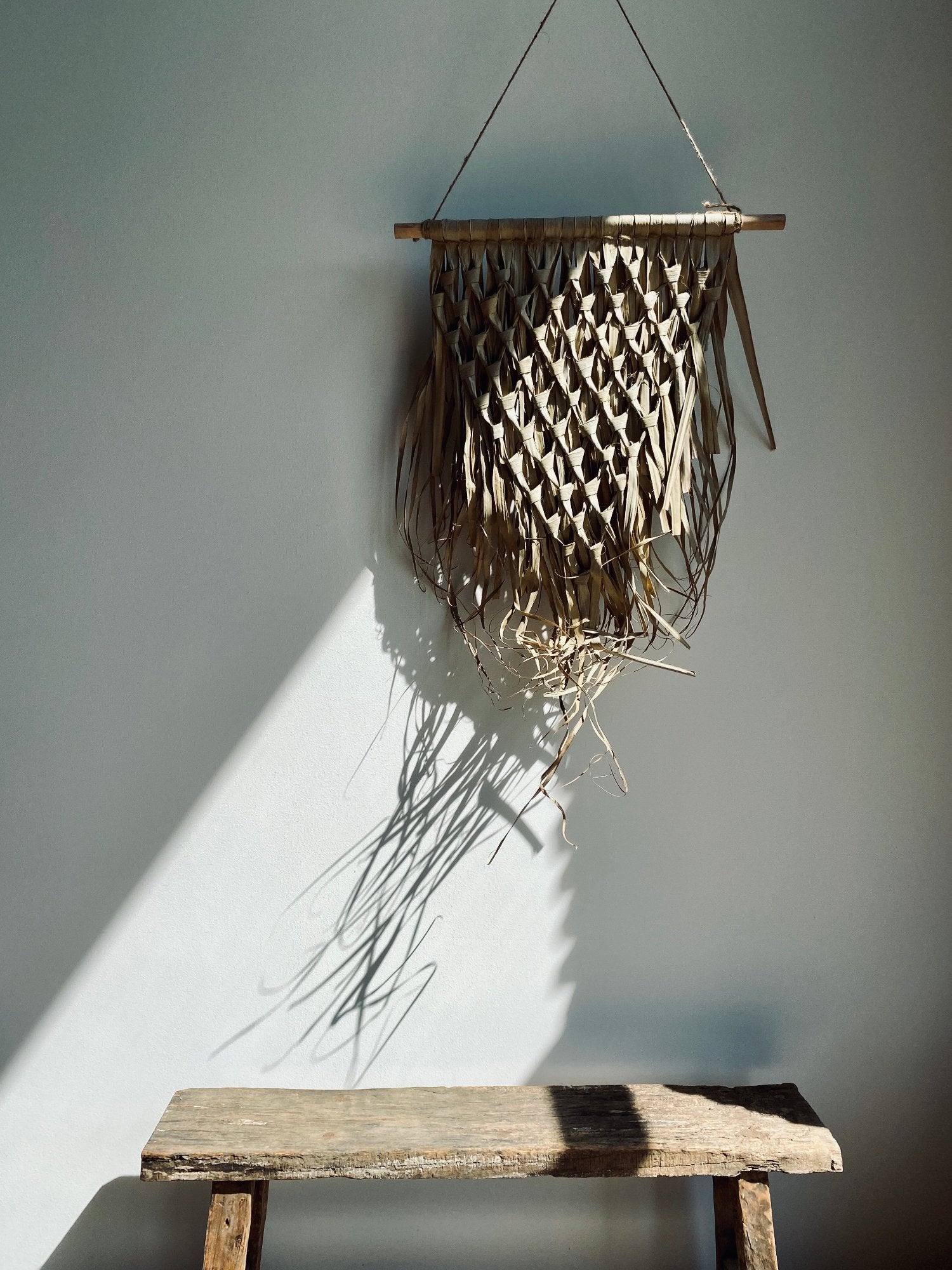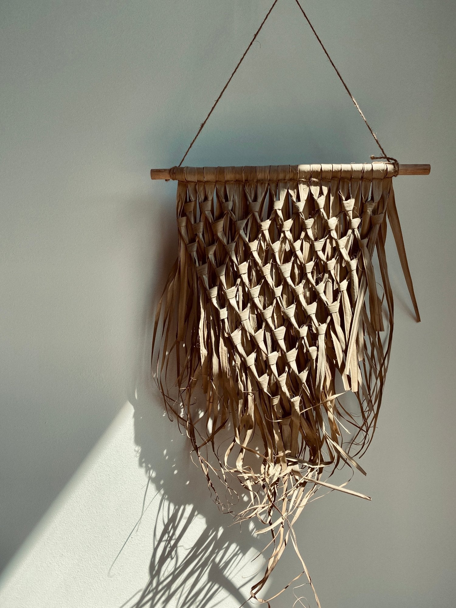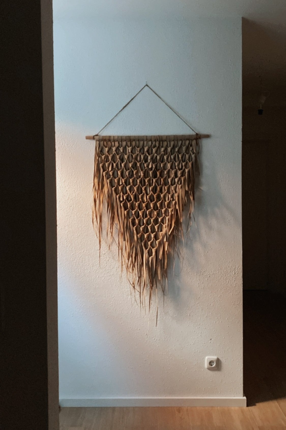 Wandbehang geflochtenes Palmblatt-Dreieck am Stab